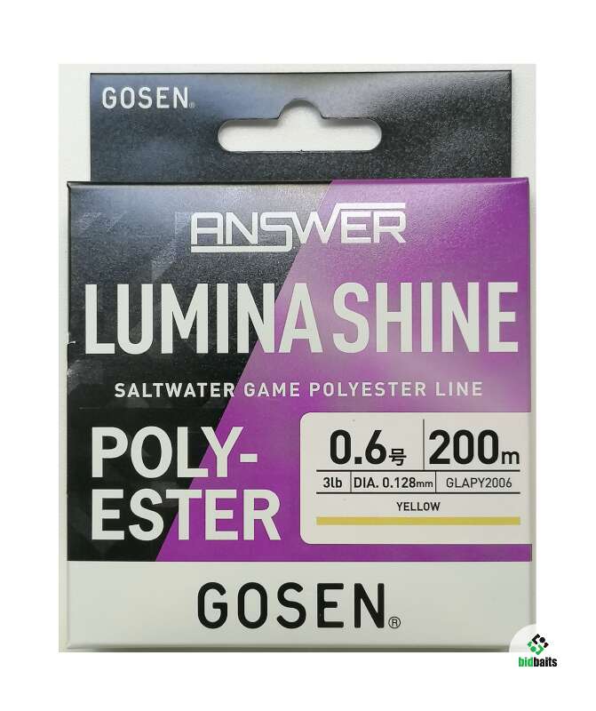 Оригинал. Япония. Новое поколение. Полиэстер GOSEN Answer Lumina Shine Polyester 200m 3lb ок.1,4кг #0.6 диаметр 0,128мм. Тонет. Yellow желтый эстер для ловли в солёной воде.