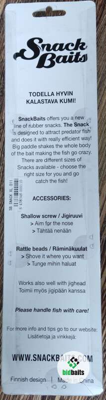 SnackBaits — уже ставшая легендарной резиновая приманка для щуки. Корпус был так тщательно продуман, причем не только по внешнему виду, но и по функциональности. За счет этого SnackBaits обладает великолепной игрой при минимальной скорости проводки. Глубина погружения приманки без грузила от 0,5 до 1,5 м. Используя специальные грузила-кнопки или подгрузку, вы можете увеличить глубину и создать точку атаки, которая заинтересует щуку. Набор SnackBaits состоит из приманки, джиг-спирали и шумовой капсулы. SnackBaits имеет множество отличных результатов в своей относительно короткой истории.