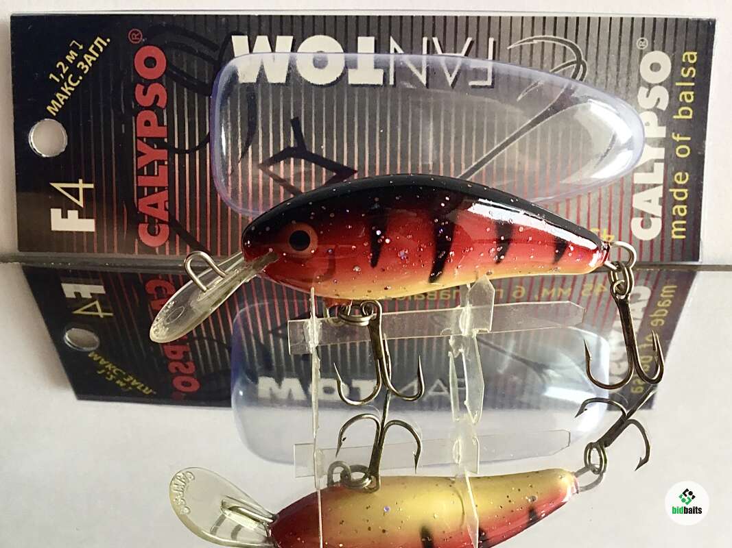 «FANTOM F4» – самая универсальная приманка фирмы «CALYPSO» ! Сочетая в себе качества «FANTOM F3» и так же производясь практически по 100 % ручной технологии , данная плавающая приманка принципиально отличается от неё удлинённой формой и , соответственно игрой , что позволяет более успешно ловить практически любые виды рыб. Это незаменимый воблер при ловле форели, а так же любого хищника мелкого и среднего размера. Хоть и форма воблера менее компактна, чем у FANTOM-а F3, он также стабильно держит течение, производя более широкие и чуть медленные колебания.
