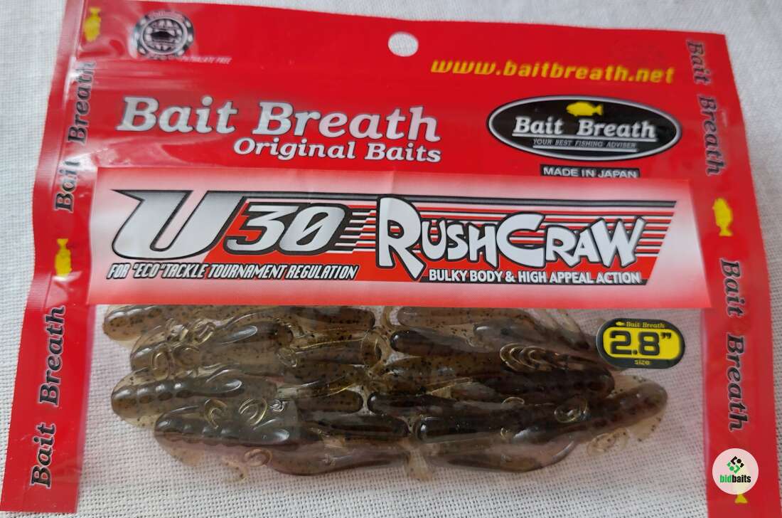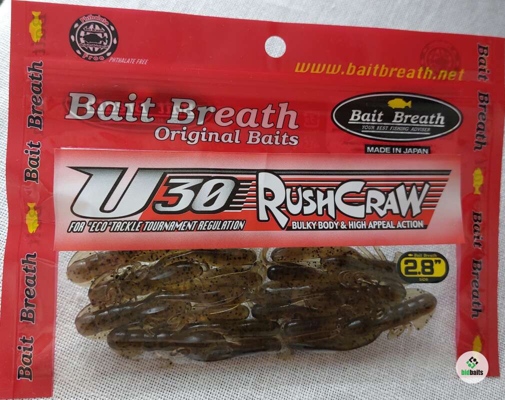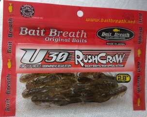 Компания Bait Breath непрерывно расширяет и совершенствует свой модельный ряд. Креативный подход к созданию оригинальных рыболовных приманок в очередной раз обеспечил производителям резкое увеличение продаж. Приманки Rush Craw является съедобной имитацией миниатюрного рачка. Движения у этих мягких приманок хаотичные и достаточно сложные, что дает интересную, живую игру. Все натуралистичные выступающие элементы этого рачка во время проводки заманчиво извиваются. Стоит упомянуть что, даже потеряв часть этих элементов, приманка не утратит своей привлекательности и непременно заинтересует хищника. Благодаря разнообразию и размеров и цветовой гаммы существует возможность подобрать и купить резину Rush Craw под любые требования. Для рыбаков желающих поохотиться на судака оптимально подойдут максимальные размеры, а вот для ловли окуня стоит приобрести миниатюрных рачков. Помимо хищника, заглатывающего насадку сразу, приманка также пользуется успехом и у мирных обитателей водоема, пробующих добычу на вкус. Модель силиконовых приманок Rush Craw U 30 от торговой марки Bait Breath представляет собой имитацию маленького ракообразного. Множество отростков в виде ножек и хвостов создают сложную и активную игру. Все эти детали энергично двигаются и извиваются, вызывая интерес хищника. Такая силиконка прослужит долго за счет того, что даже при потере нескольких подвижных элементов, она будет сохранять свою интенсивную игру. В данную серию входят приманки разных размеров. Модель 2,8 весит 3,6 гр., а ее длина составляет 7,1 см. Среди представленных расцветок есть модели темных цветов, полупрозрачные варианты, яркие и реалистичные. Большинство расцветок дополнены вкраплениями из разноцветных блесток.