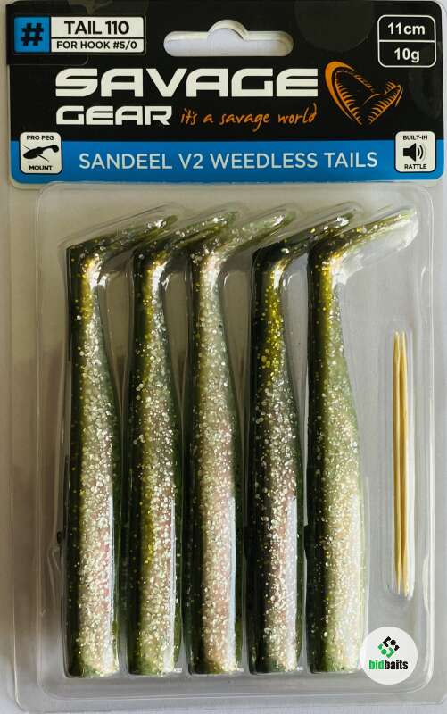 Savage Gear LB Sandeel V2 Weedless Tail - мягкие приманки имитации песчанки типа "виброхвост", специально разработанные для оснащения офсетными крючками. Специальные слоты на брюшке и спинке приманки позволят вам правильно разместить крючок. Приманка великолепно работает по морскому окуню, треске, сайде и другим морским хищникам при их ловле спиннинговой снастью с катеров, набережных и пирсов. Благодаря прогонистой форме тела, выполненного из высококачественного силикона она хорошо играет даже на замедленной равномерной проводке. Помимо морской рыбы приманка Savage Gear Sandeel V2 WL Tail 110 хорошо привлекает пресноводных хищников - например, среднего и трофейного размера щуку и судака.