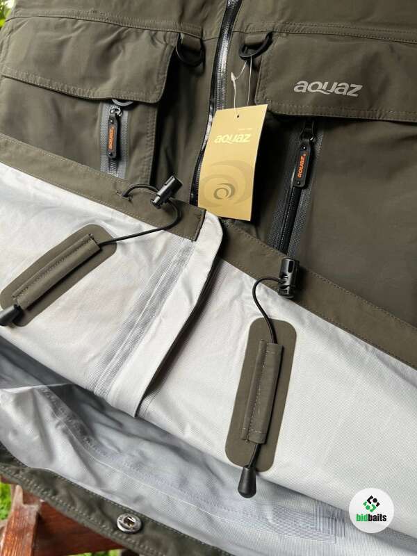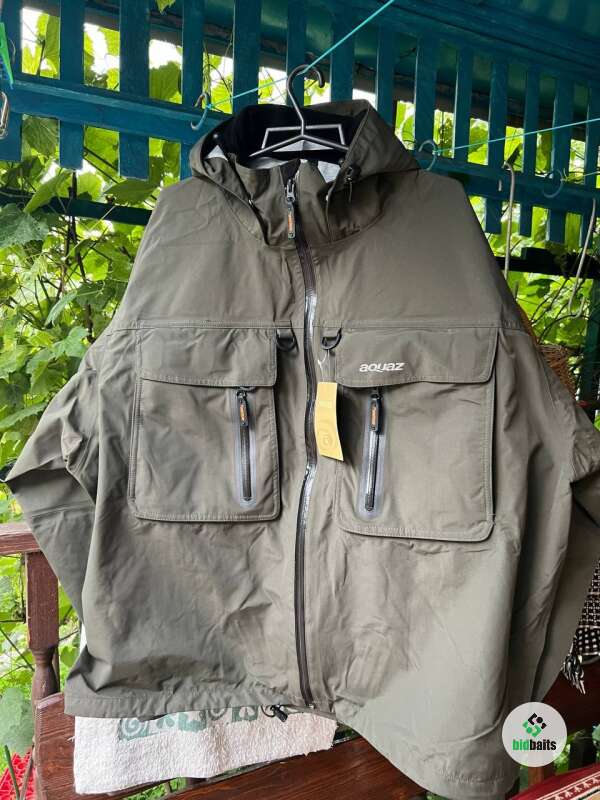 Новая высококачественная, мембранная куртка Aquaz с капюшоном. Размер XXL. Водонепроницаемые карманы для инструментов спереди позволяют хранить множество рыболовных принадлежностей, разместить большую мушку или ящик для инструментов. 5-слойная дышащая ткань на 100% водонепроницаема. D-кольца. Все швы проклеены. Вы гарантированно останетесь сухими во время рыбалки под дождем. Куртка Trinity оснащена новой системой манжетов на запястьях, которая сохраняет ваши руки сухими.