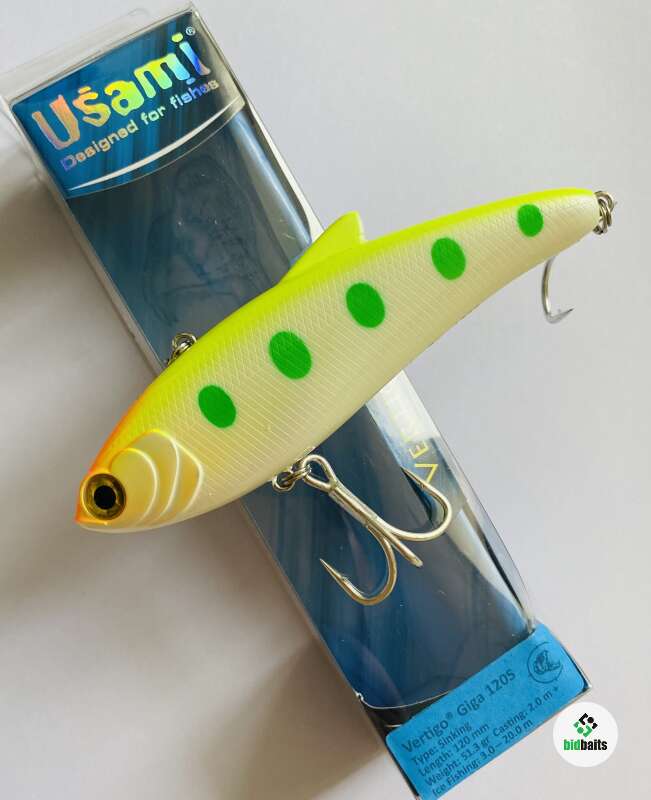 Модель Vertigo Giga помимо увеличенных массы и длины отличается от обычных воблеров Usami Vertigo еще и насечками в виде чешуи и звуковой камерой со стеклянными шариками.