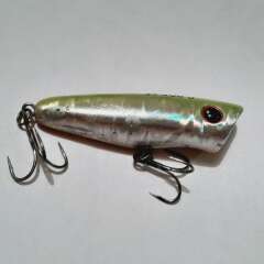 Плавающий поппер 65мм, 7,7гр. Состояние хорошее, есть потертости лакокрасочного покрытия.