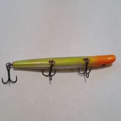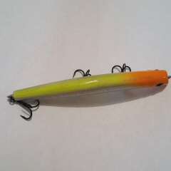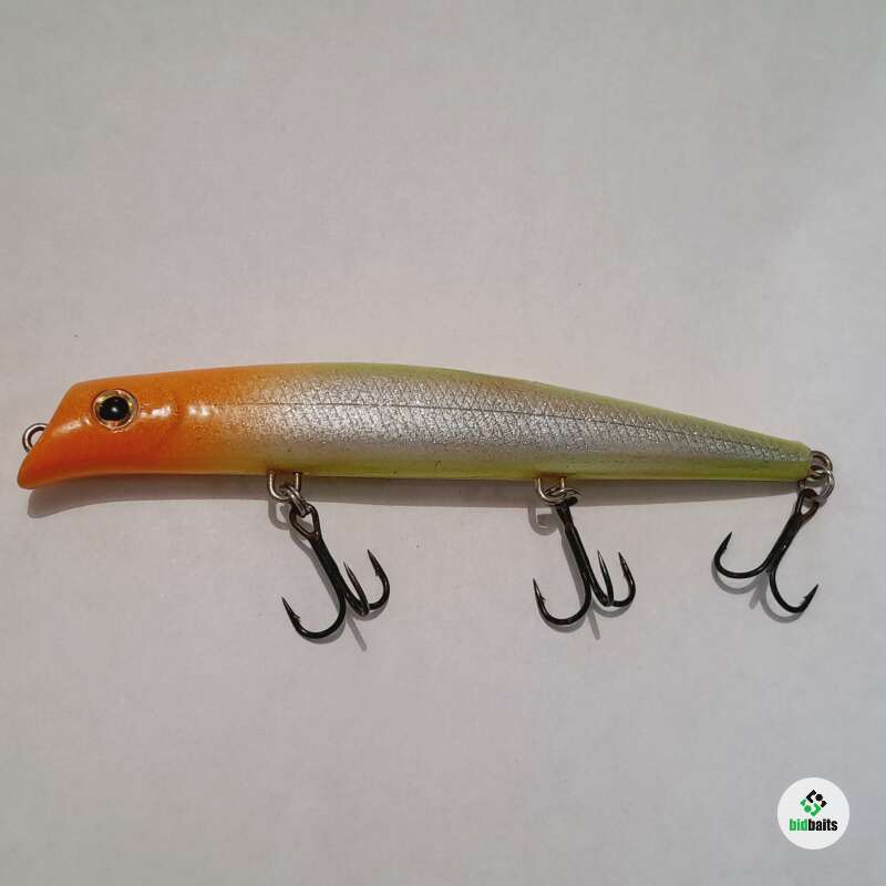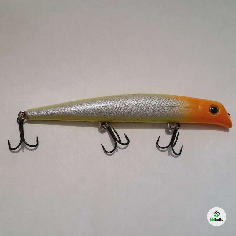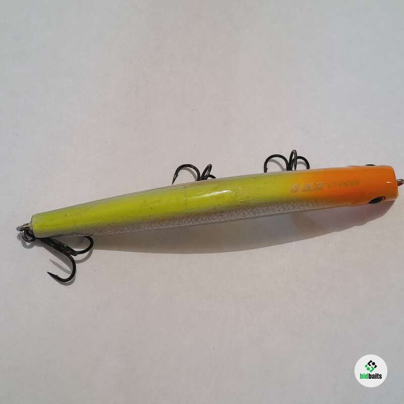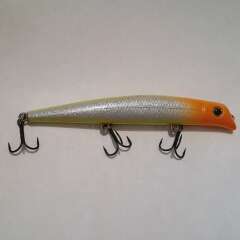 Плавающий воблер с системой дальнего заброса 100мм, 11,5гр. Состояние хорошее, есть незначительные микротрещины и сколы лакокрасочного покрытия.