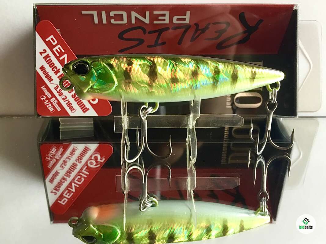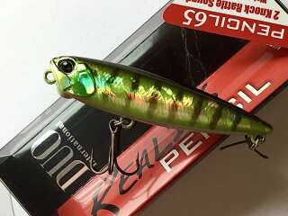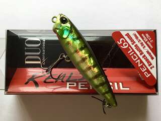 DUO Realis Pencil 65 - поверхностная приманка от компании DUO. Realis Pencil задал стандарты для "волкеров". Усиленный корпус и большая воздушная камера обусловили большую прочность и высокую плавучесть приманки. Обводы приманки обеспечили её высокие аэродинамические свойства, что в совокупности с выверенной огрузкой и расположением задней петли позволило достичь более стабильного положения приманки в полёте и повысило дальность заброса. Duo Realis Pencil - отличная поисковая приманка, которая позволить обловить поверхность даже заросших водоемов. Заглубление "0+" позволяет проводить воблер над островками растительности, если есть небольшое пространство чистой воды. Призвание модели - анимация Walking-the-Dog («ёлочка»). Волкер широко скользит по зигзагообразной траектории, оставляя за собой волновой след и сверкая боками. В хвостовой части корпуса есть подвижные грузы. На рывке, ударяясь друг о друга, они создают характерный щелкающий звук, который особенно нравится хищнику.