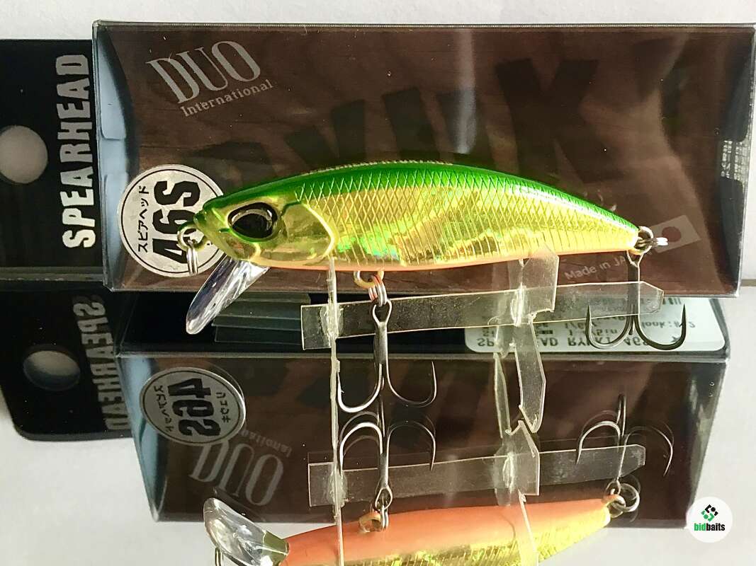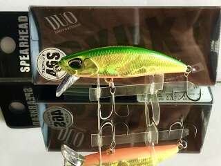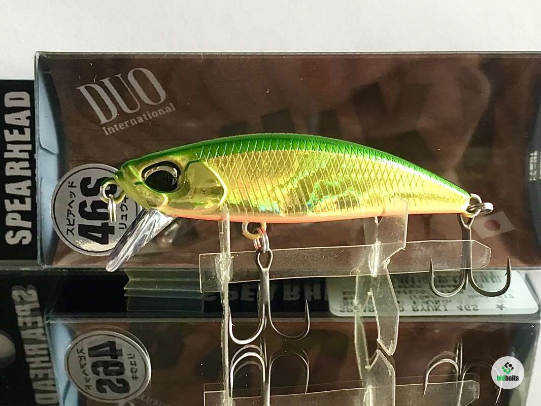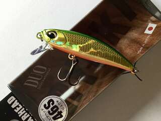 Spearhead Ryuki 46S - новинка 2022 года от японского бренда DUO. Это абсолютно новая приманка, которая является продолжением линейки Ryuki 45S. Иная форма отгрузки и тела в виде трапеции, дополнительный грамм веса, увеличенная лопасть – все эти детали вместе обеспечивают повышенную управляемость и отзывчивость даже на приличной дистанции, куда Ryuki 46S улетает очень легко. Увеличение веса приманки открыло перед рыболовами возможность комфортной ловли в сильных струях и тягунах, где привычные приманки "выдавливаются" течением на поверхность. Работа Ryuki 46S чуть более плавная чем у Ryuki 45S, и при столь небольшом размере воблер в спокойной воде с равномерной проводкой ухитряется демонстрировать самый естественный рисунок игры, виляя всем телом. На паузе он тонет, продолжая колебания, а лишний грамм веса увеличивает глубину рабочего горизонта .
