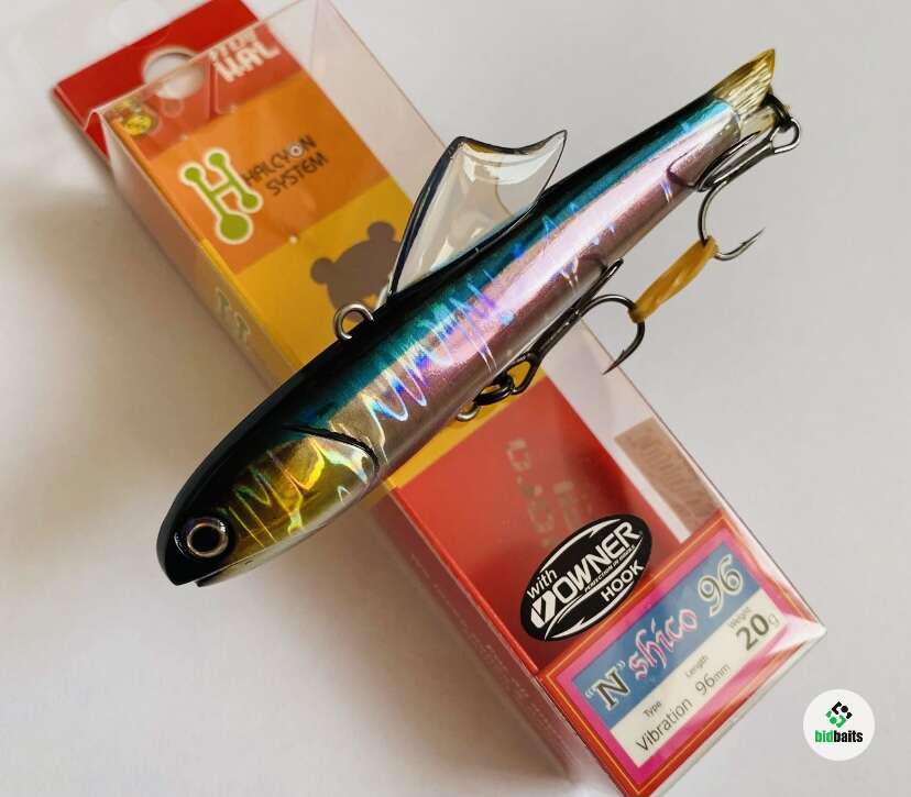 Старший брат 77 N Schico - Виб Halcyon System "N" Shico 96mm. Доступен в двух весовых категориях 20 и 30 грамм, фактически полностью перекрывает потребности в ловле судака и щуки. На мелководье и местах со слабым течением лёгкая версия позволяет делать плавные размеренные покачивания, а чтобы привлечь хищников с большого расстояния достаточно нескольких взмахов - виб активно вибрирует и уходит в сторону, сигнализируя: "Ужин подан!". Тяжёлая версия отлично подойдёт для больших глубин и сильного течения, где большой вес скомпенсирует влияние этих факторов и даст возможность полноценно делать анимацию в сложных условиях. N Schico 96 + несколько плавных взмахом с паузами около пяти секунд, а затем плавные покачивания = вот рецепт отличного улова!Очень подвижный и шумный виб с активными, частыми колебаниями и значительным уходом в сторону при сбросе. Хорошо отзывается на анимацию в виде мормышинга и раскачки. Работает как на коротких подбросах, так и на медленных подъёмах с затяжными паузами. Halcyon System 'N' Shico одинаково хорош как для щук и судаков, так и для прудовой форели.
