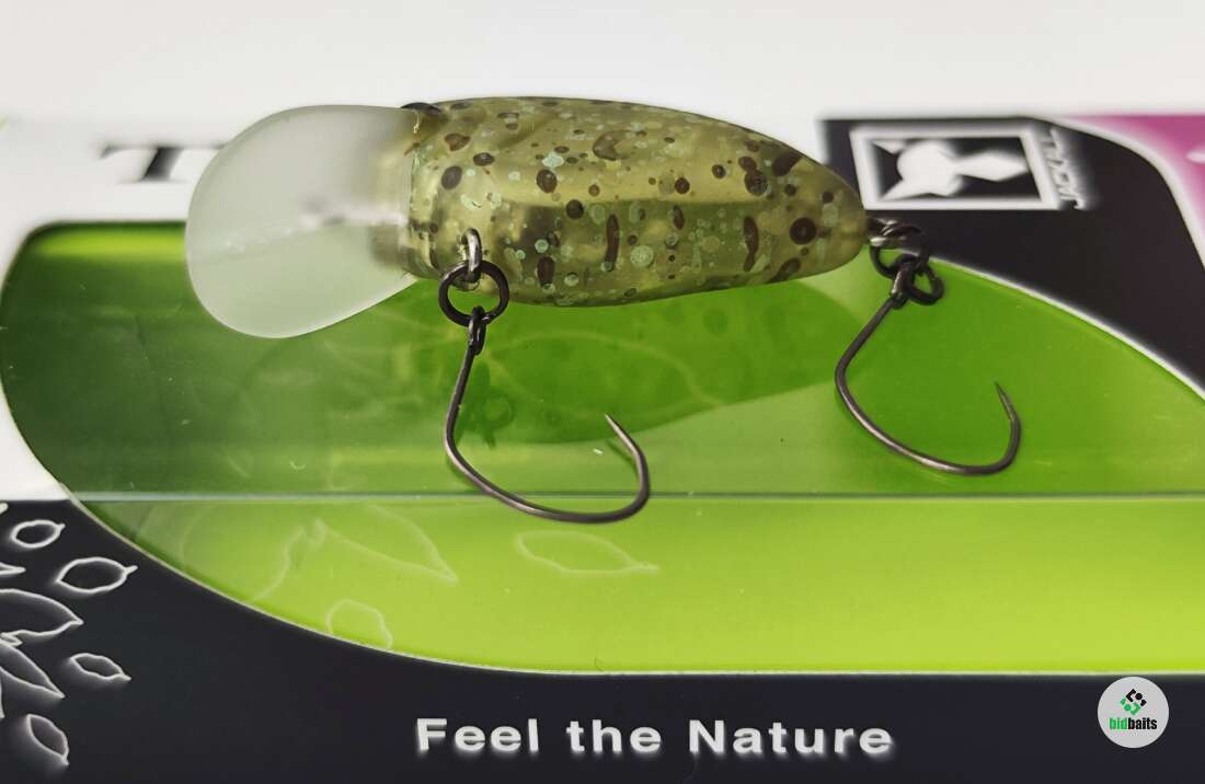 Воблер оснащён двумя одинарными крючками без бородок новой формы (QR-HOOK), минимизирующими число сходов.