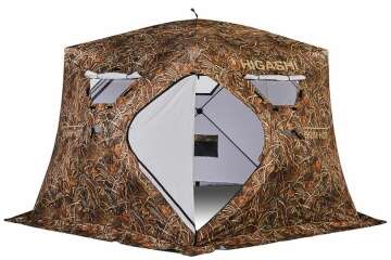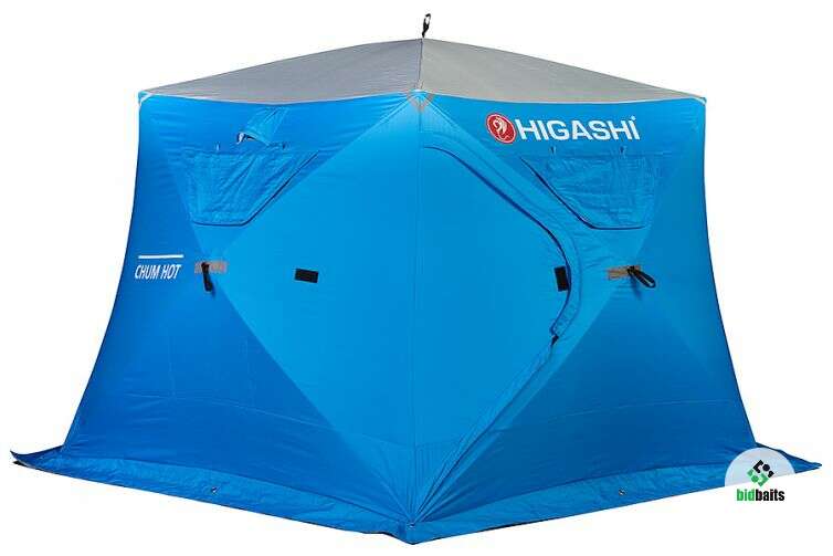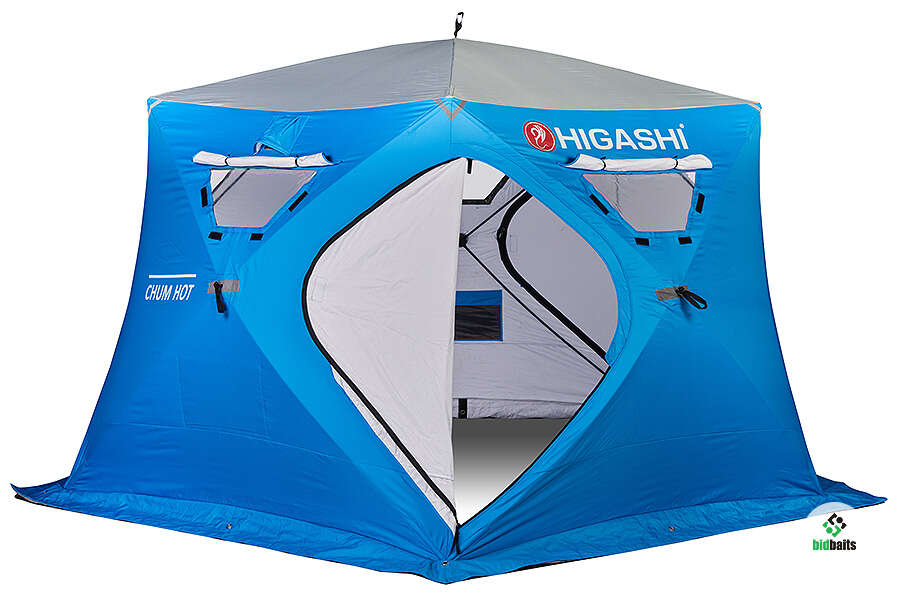 Зимняя рыболовная палатка Нigаshi Сhum представляет собой пятистенную трапециевидную модификацию. Предназначена для компаний рыболовов до семи человек. Утепленная.