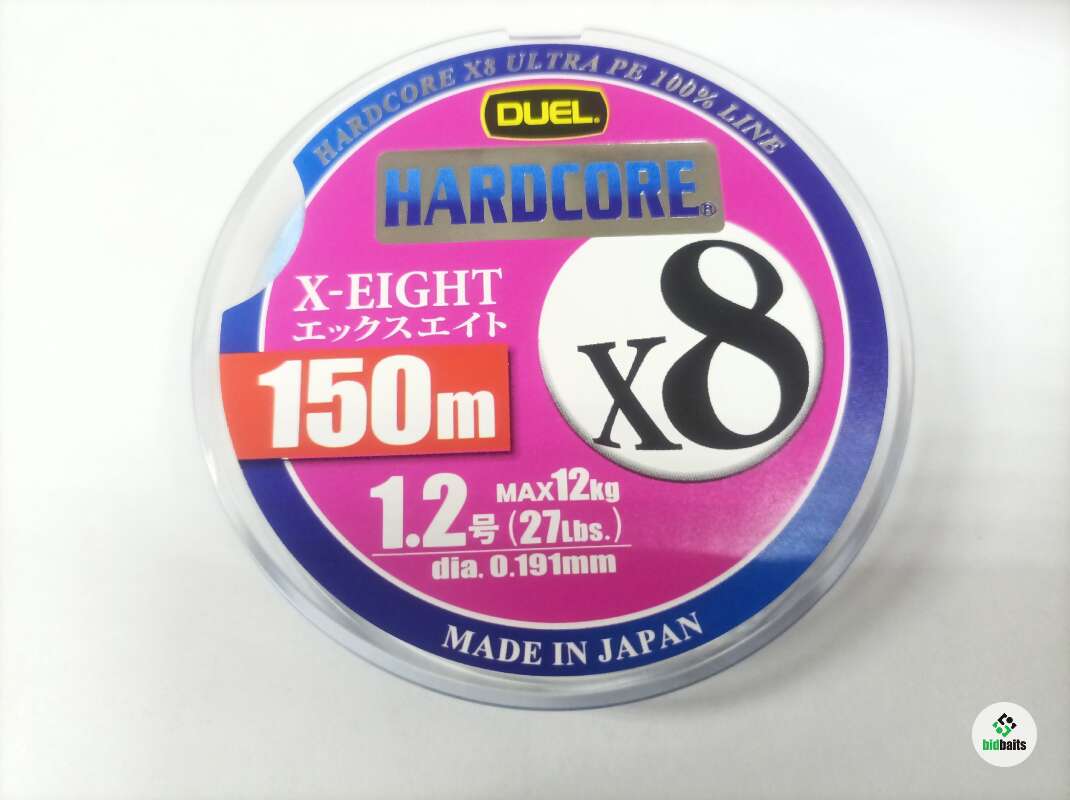 Hardcore X8 PE от японского концерна Yo-Zuri/Duel - восьмижильный плетеный шнур повышенной прочности. Специальная технология плетения волокон обеспечивает максимальную плотность. Плетенка способна выдерживать экстремальные нагрузки при вываживании особо крупных хищников. Плетеная лески имеет хорошую устойчивость к истиранию. Поверхность плетни очень гладкая, благодаря чему он легко скользит по внутренней поверхности колец. Это увеличивает дальность заброса приманки. Восьмижильная плетенка отличается хорошей чувствительностью. Шнуры Yo-Zuri/Duel могут использоваться для морской рыбалки.