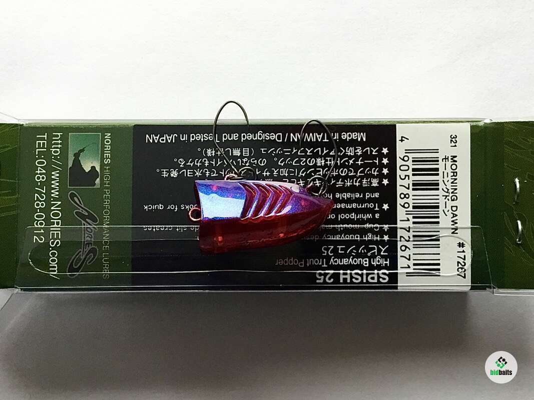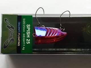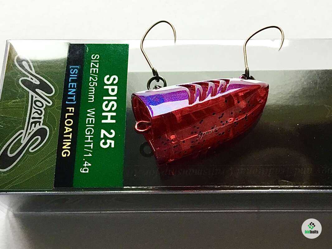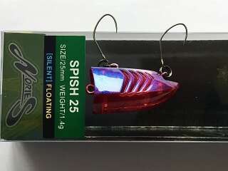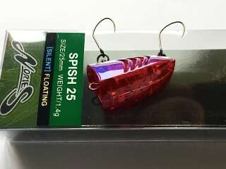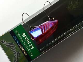 Spish 25 - новинка от японского производителя Nories. Маленький поппер, разработанный специально для ловли пассивной форели. Несмотря на свой небольшой вес, воблер обладает прекрасными полетными качествами. Эксперты Nories разрабатывали эту приманку как секретное оружие для спортивных турниров.