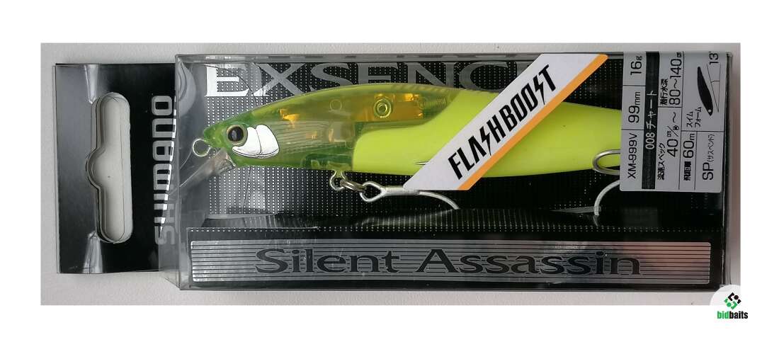 воблер SHIMANO XM-999V Exsence Silent Assassin 99SP Flash Boost #008 Chart, свечение в UV, суспендер, длина 99мм, вес 16гр., заглубление 80-140см.