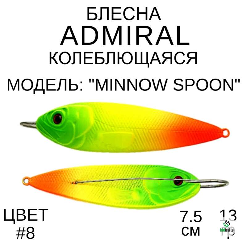 Admiral, которая предназначена для ловли рыбы на спиннинг. Эта блесна имеет форму, напоминающую маленькую рыбку, и обладает высокой степенью реалистичности.