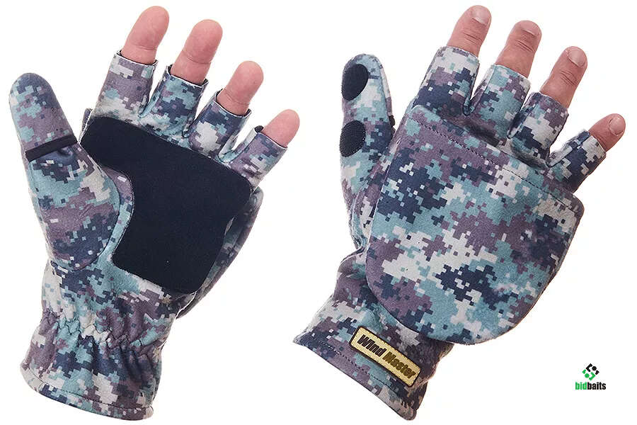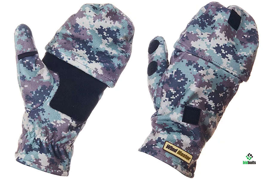 Перчатки-варежки Wind Master имеет форму перчатки с обрезанными пальцами. Откидной верх (варежка) помогает сохранить тепло рук во время передвижения, в процессе ловли. С внутренней стороны имеются накладки, которые защищают от механических воздействий (возникающих при использовании ледобура, пешни), исключают скольжение.Наружное покрытие из материала Windstopper обеспечивает надежную защиту от сильного ветра. Внутренний утеплитель Taslon защищает руки рыболова от мороза (до-30°С) и влаги.