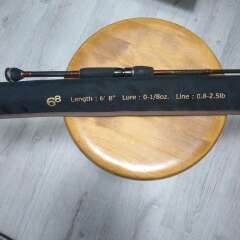 Спининговое удилище.Гладкий изгиб стержня.Пподвижение.68.Длина:6 футов 8 дюймов.Приманка:0-1/8 унц или.Леска:0.8-2.5 фунта.