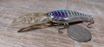 Состояние на фото - в этом случае затрудняюсь дать объективную оценку воблеру, как правило следы использования ярко выражены, может быть не всё хорошо с лкп,но видимых дефектов по функционалу не обнаружено