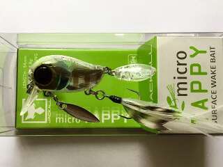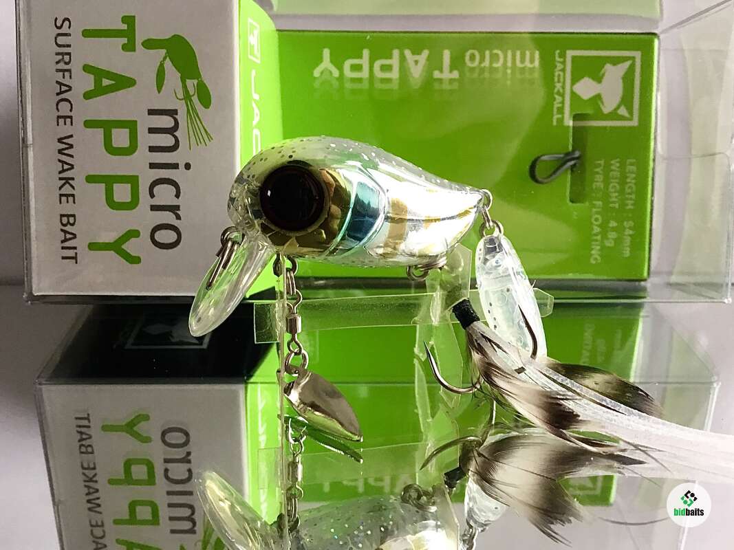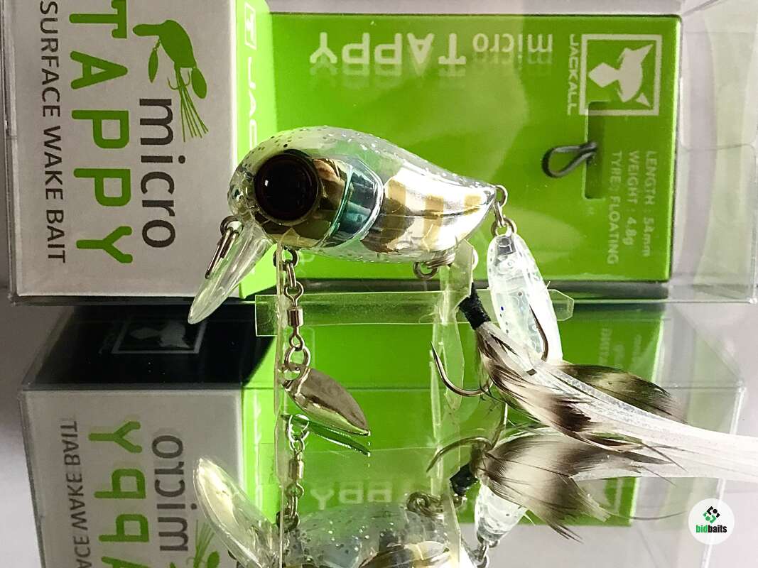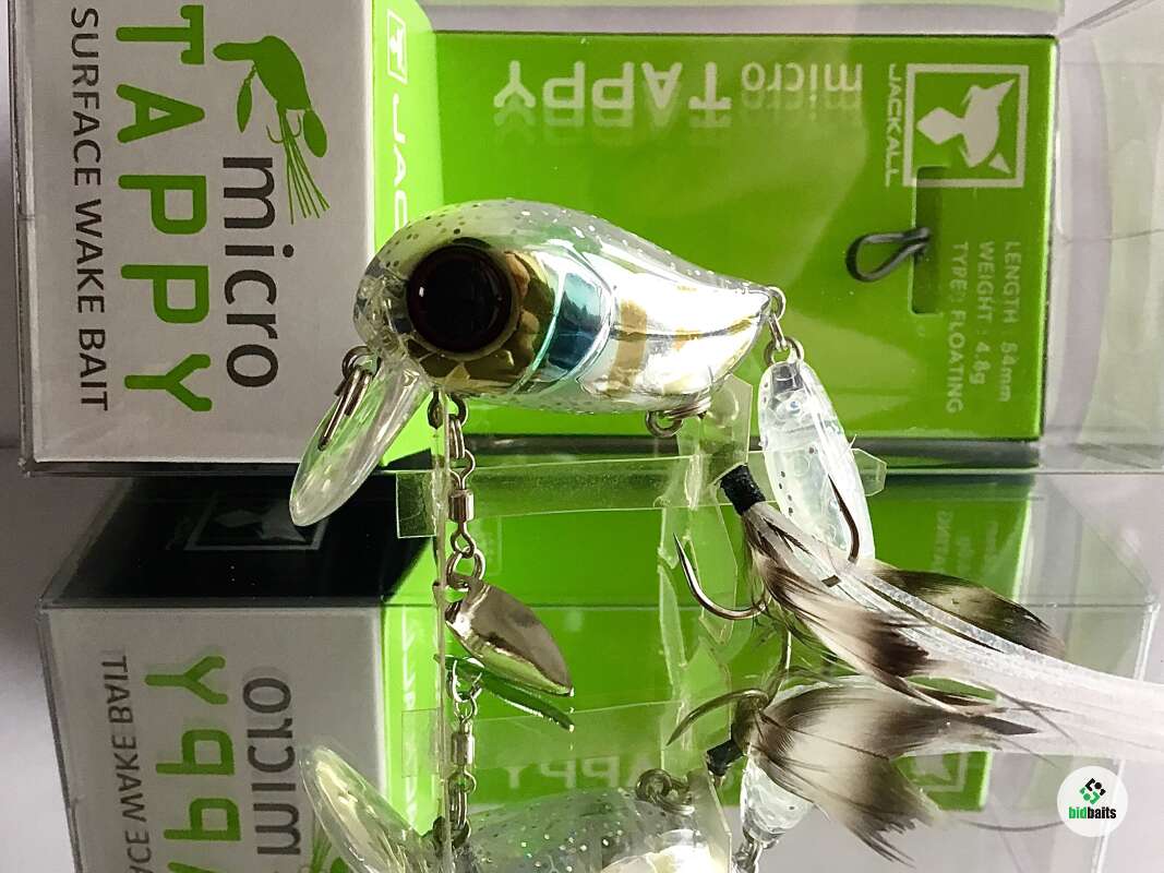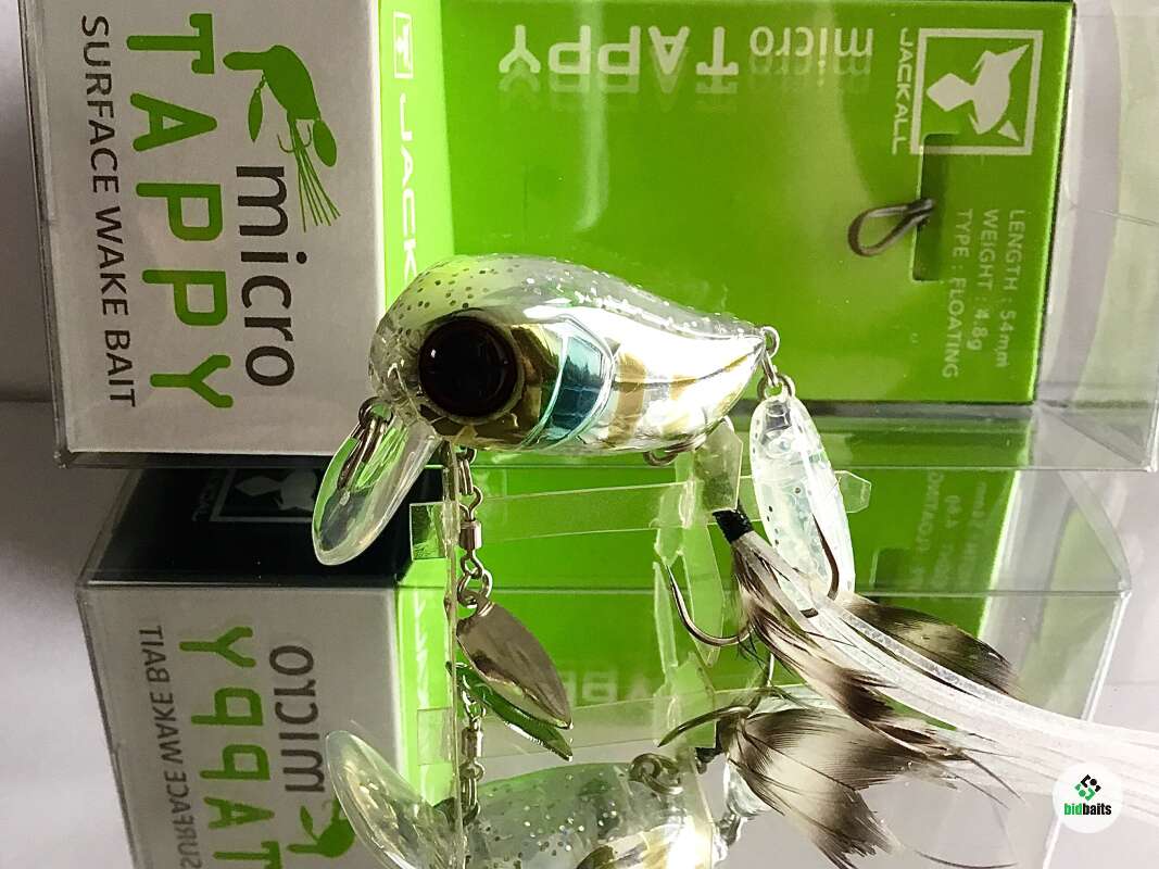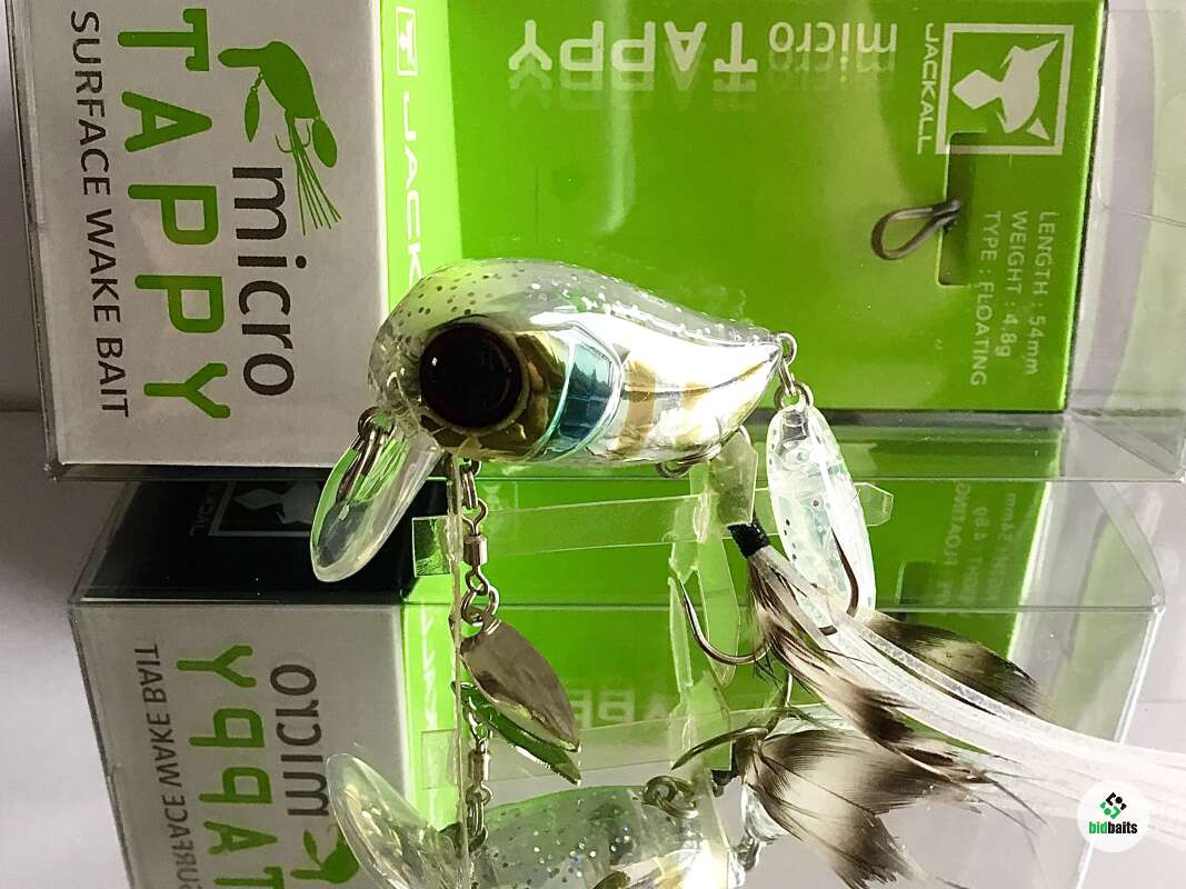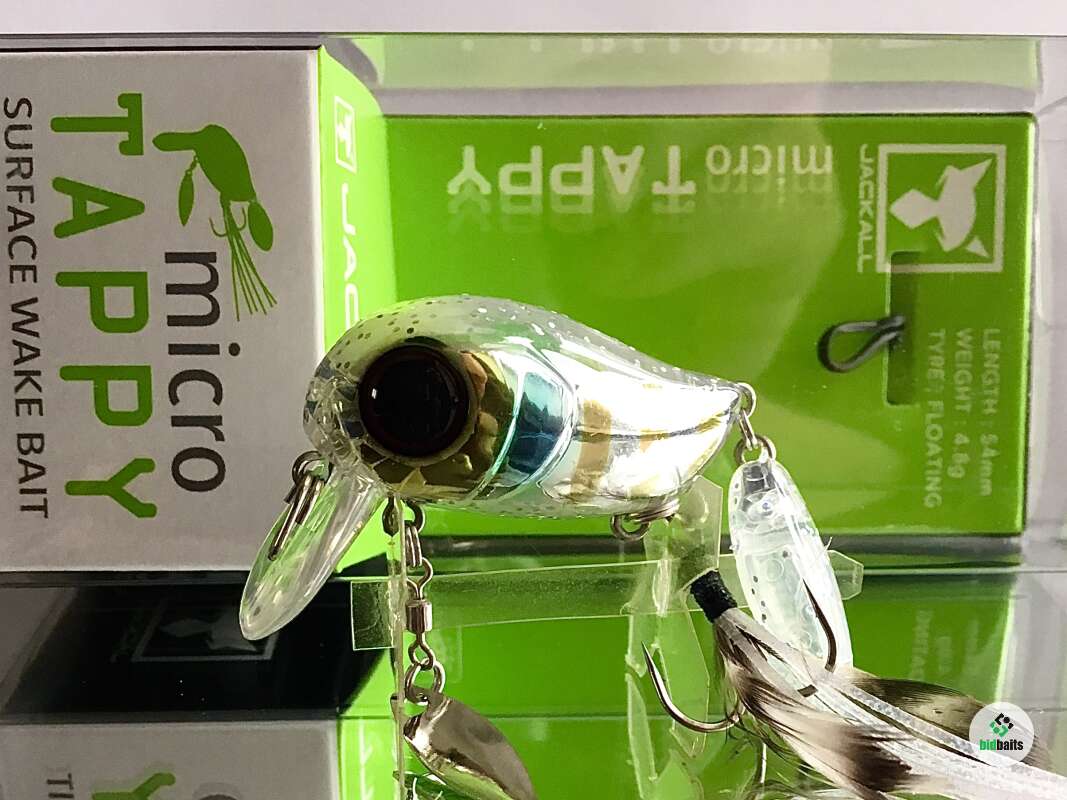 Micro Tappy 54F -'то небольшой воблер класса "crank", который особенно ценится у любителей ловли белого хищника. Подповерхностное заглубление воблера позволяет облавливать заросшие и труднодоступные места водоема. Приманка оснащена множеством подвижных элементов для привлечения рыбы и соблазнения её на поклёвку. Jackall Micro Tappy имеет объёмное пузатое тело с широкой лопаткой, которая создаёт активную виляющую игру во время проводки. Единственный тройник, установленный на животе, оснащён бородкой из комбинации перьев и силиконовых полосок. Это помогает стабилизировать приманку, спрятать тройник и создать дополнительную струящуюся игру, привлекающую хищника. В нижней части воблера также имеется металлический лепесток, закреплённый на вертлюжке, который вращается во время проводки, при этом бликуя. В задней части Micro Tappy закреплён пластиковый хвост повышенной плавучести, что сделано для того, чтобы создавать дополнительные волнения на поверхности и пускать усы во время движения. Данная особенность добавляет воблеру привлекательности в воде и обеспечивает гарантированный улов даже в период низкой активности рыбы. Jackall Micro Tappy разработан для ловли басса у поверхности воды, у нас же он отлично работает по окуню и голавлю.
