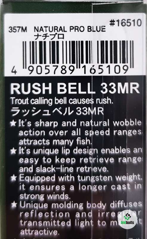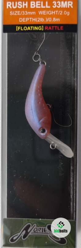 Nories Rush Bell 33MR – шумовой крэнк созданный для ловли форели. Воблер прекрасно сбалансирован, отлично работает на любых скоростях проводки, сохраняя свою игру даже при очень медленной проводке. Вольфрамовая огрузка делает возможным дальний заброс даже в ветряную погоду.