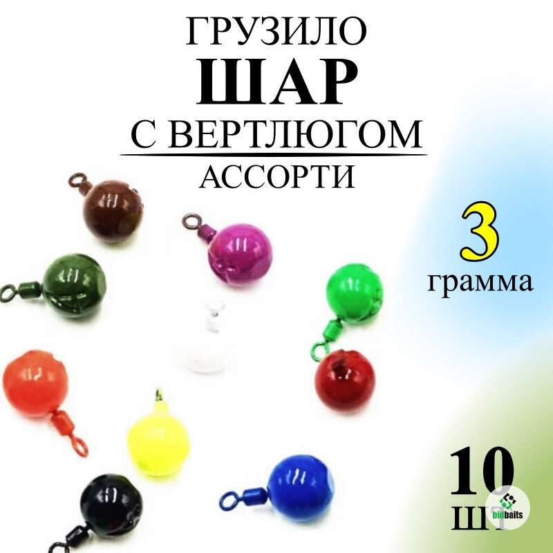 Шар с вертлюгом крашеный 3 гр. (ЦЕНА ЗА 10 ШТУК)
