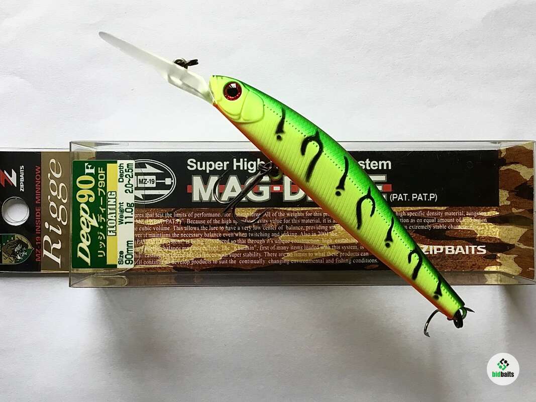 Rigge DEEP 90F– плавающая глубоководная модель от компании ZIPBAITS. Данная приманка обладает широкой лопастью, которая обеспечивает не только большую глубину проводки и активную игру, тем самым привлекая солидных хищников, но и отличную работу на проводке «upstream» – вверх против течения. Именно за счёт такой лопасти воблер активно «пашет» дно, поднимая аппетитные облачка мути, всем своим видом имитируя беззаботно кормящуюся рыбку.При размашистой широкоамплитудной игре главными приемами анимации Rigge DEEP 90F становятся равномерная проводка и проводка с небольшими ускорениями, после которых следует делать остановку. Именно в этой последней фазе, когда воблер начинает медленно всплывать, часто и происходит поклевка хищника. По видовой принадлежности это может быть и матерая щука, и судак, и крупный окунь, а также кумжа и форель. Серия Rigge Deep оснащается патентованной фирменной системой балансировки с вольфрамовым грузом. Наличие этой системы обеспечивает отличную дальность заброса приманки и оптимальную балансировку воблера, а также позволяет осуществлять контроль за работой приманки на максимальных дистанциях при выполнении проводки.