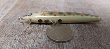 Состояние на фото - в этом случае затрудняюсь дать объективную оценку воблеру, как правило следы использования ярко выражены, может быть не всё хорошо с лкп,но видимых дефектов по функционалу не обнаружено