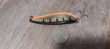 Состояние на фото - в этом случае затрудняюсь дать объективную оценку воблеру, как правило следы использования ярко выражены, может быть не всё хорошо с лкп,но видимых дефектов по функционалу не обнаружено