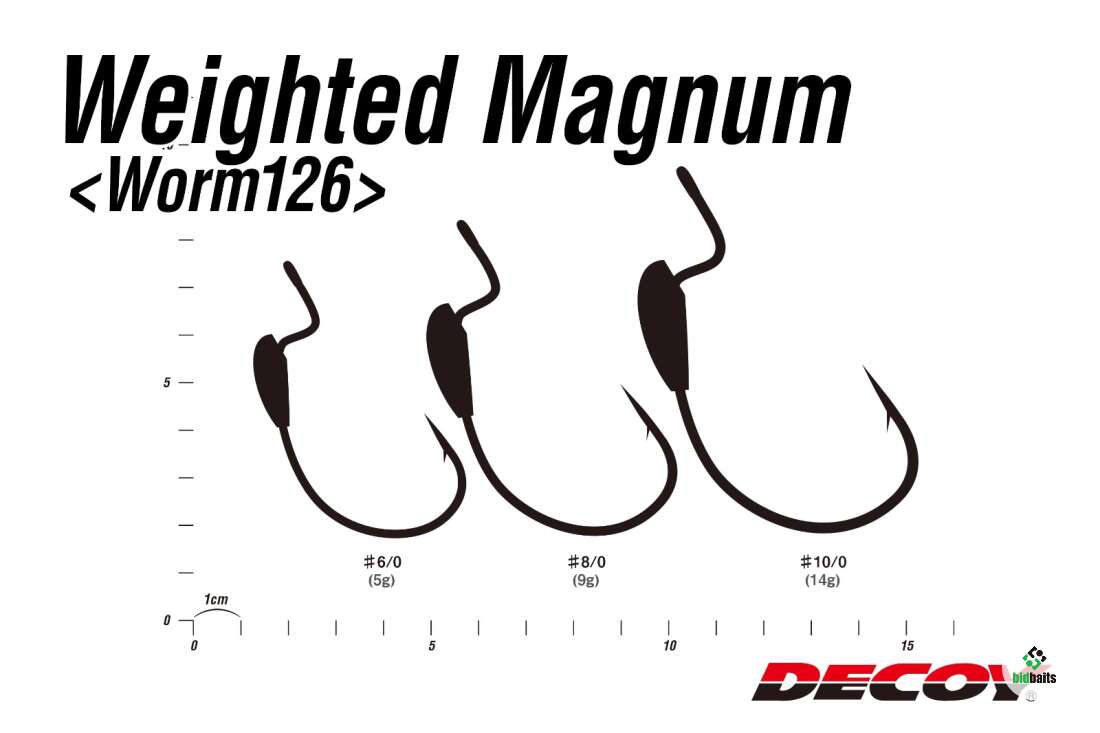 Decoy Worm 126 - это специально созданный крючок для ловли крупными силиконовыми приманками без огрузки. Крючок уже сам имеет свинцовую огрузку, смещенную к месту изгиба офсетника. Крючок изготовлен из высококачественной стали и имеет очень острое жало крючка.
