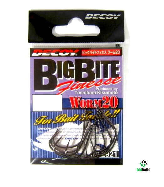 DECOY Worm 20 Big Bite Finesse - чрезвычайно прочные крючки, предназначенные для тонких методов ловли крупной рыбы. Они идеально подходят для подсечки приманки "носом" или в дурацком стиле. Благодаря особо прочной проволоке вы можете легко подсаживать на нее даже очень крупную рыбу. Предлагаемые размеры позволяют использовать широкий спектр приманок - от маленьких до самых крупных. Крючки кованые, с черной отделкой. Сделано в Японии!