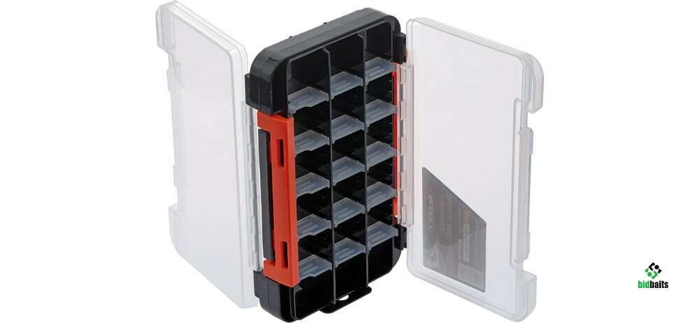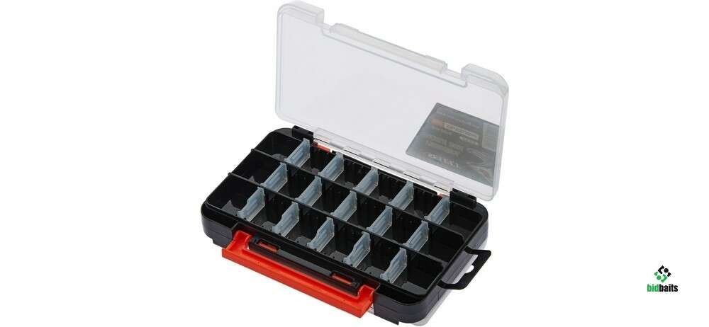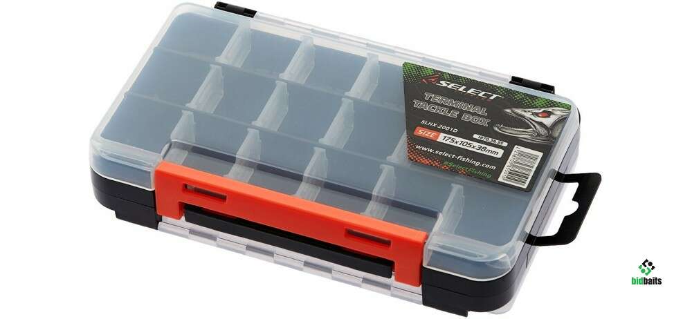 Коробка Select Terminal Tackle Box SLHX-2001D - двухсторонняя модель для хранения спиннинговых ультралайтовых приманок и джиг головок. С обеих сторон расположено по 3 продольных ячейки со съёмными перегородками, куда можно разместить довольно большое количество блёсен, воблеров и силикона. Такая конструкция коробки позволяет иметь с собой целый набор разноплановых приманок, которых хватит на полноценную рыбалку. Крышки оснащены качественными поворотными петлями и широкими застёжками для удобного открывания одним движением.
