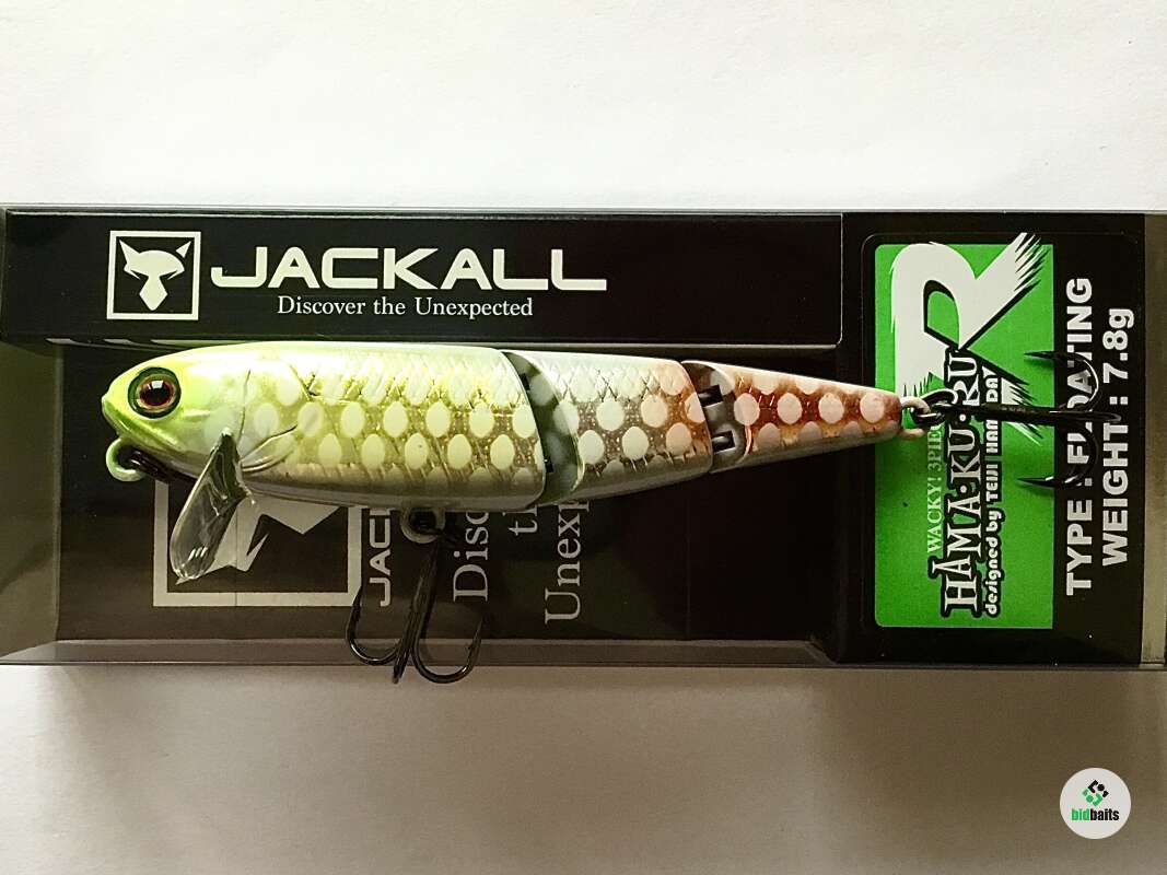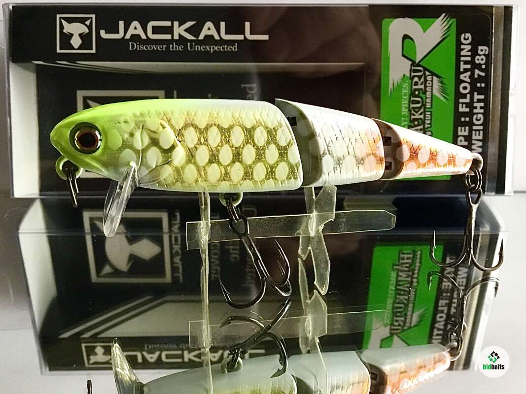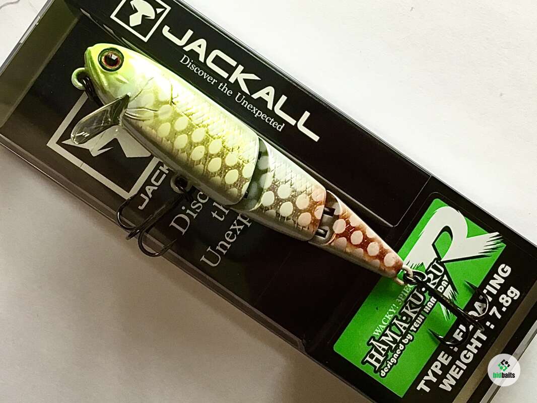 Hama-Ku-Ru от компании JACKALL специально разрабатывался для ловли на мелководье. Его характеристики позволяют выполнять проводку поверх водной растительности, не собирая при этом пучки травы. Благодаря трём сегментам, из которых состоит воблер, его игра в воде при проводке просто завораживает. Он идёт под водой очень плавно, широкой змейкой, причём даже на маленьких скоростях.В большинстве случаев при ловле на мелководье оптимально работает проводка плавными довольно амплитудными потяжками, между которыми нужно делать довольно продолжительные паузы. HAMA-KU-RU показывает хорошие показатели и на равномерной проводке. Благодаря своему весу Jackall HAMA-KU-RU обладает отличной аэродинамикой, что позволяет использовать его для дальних забросов и активного поиска рыбы. Отличная мелководная приманка для ловли средней и крупной щуки.