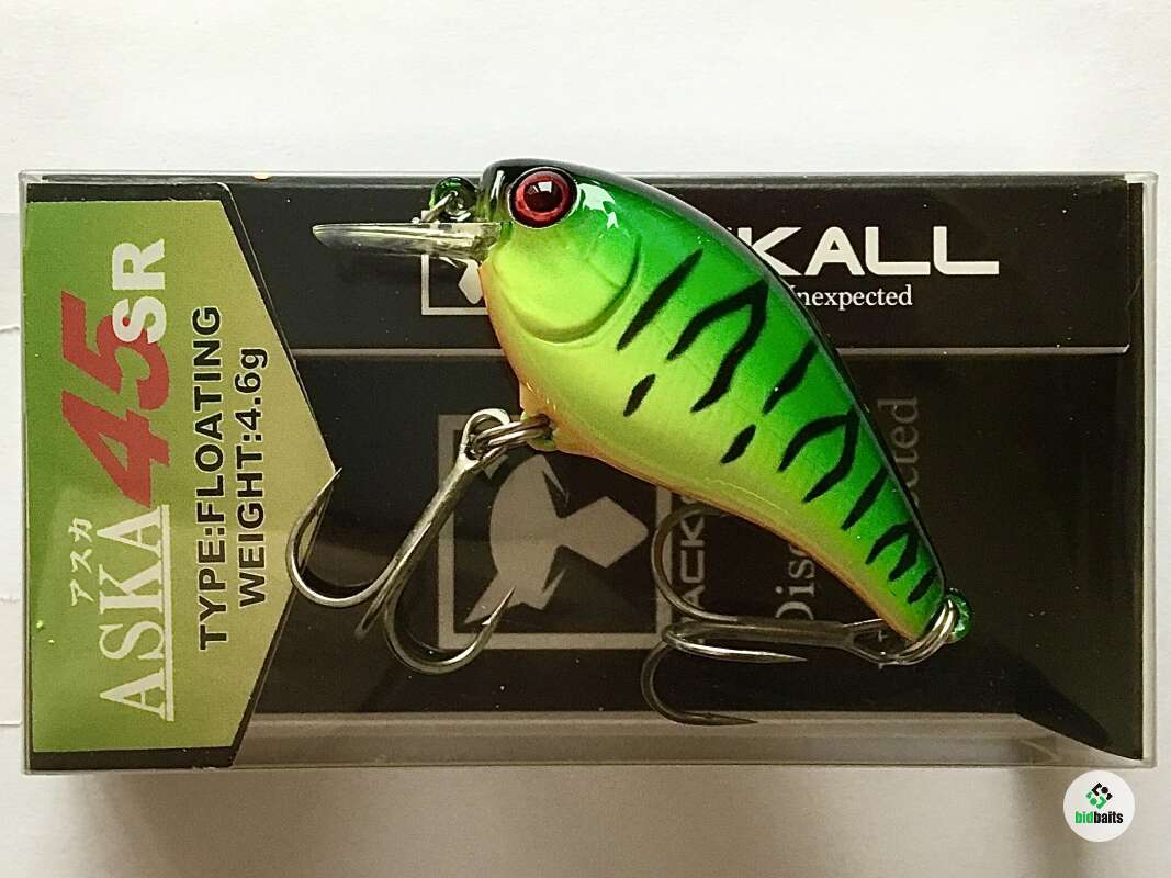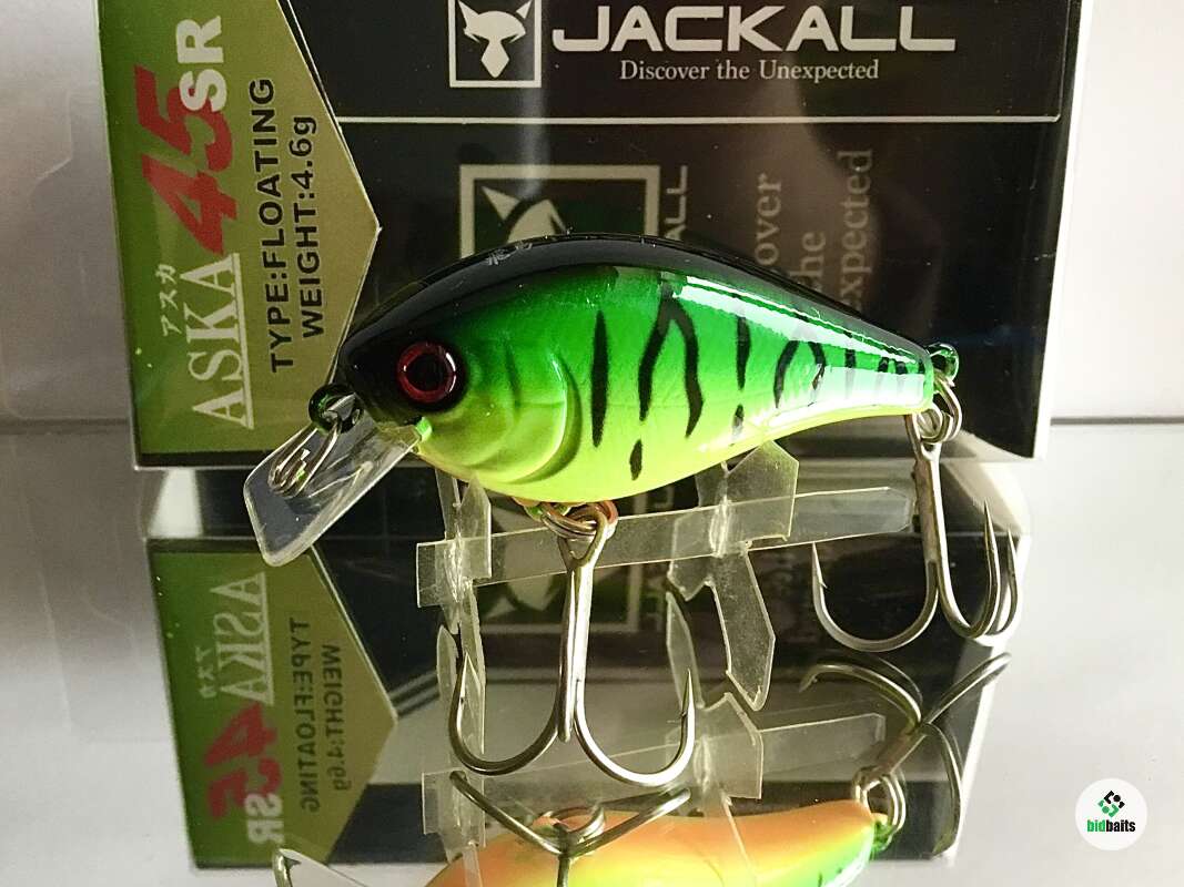 Японская фирма Jackall после долгих исследований и тестов выпустила уловистый воблер-крэнк Aska. В нашей полосе приманка очень успешно ловит хищников: щука, окунь, голавль, жерех. Оснащенная плоской, широкой крупной лопастью, приманка обладает очень активной высокочастотной игрой. Тщательно продуманный дизайн и наличие балансировочного груза позволяют воблеру хорошо держать струю при ловле на течении. Приманки обладают хорошей дальностью заброса. Продуманное расположение тройников позволяет избежать их перехлеста. Воблер устойчив к зацепам за подводные препятствия и растительность. Воблеры Aska имеют высококачественное лакокрасочное покрытие, устойчивое к зубам хищника.