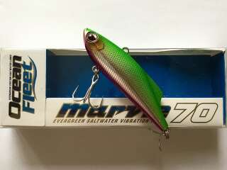 EverGreen Marvie – очень популярная серия раттлинов, показывающая результат круглогодично и вне зависимости от водоема! Она подходит как для ловли в заброс при использовании спиннинга, так и для отвесной анимации со льда, составляя серьезную конкуренцию блеснам и балансирам. EverGreen Marvie обладает отрицательной плавучестью и предназначен для работы в придонном слое – он стремительно погружается на глубину, стоит только сделать паузу в проводке. Об этом отличительном свойстве раттлинов нужно помнить при рыбалке в коряжнике и местах с большим количеством камней, иначе зацепы будут неизбежны. В сезон открытой воды, летом и осенью, данная модель является отличной альтернативой джигу – их можно использовать как совместно, периодически чередуя для возобновления клева, так и по отдельности, если хищник лучше отзывается на что-то одно. Зимой же EverGreen Marvie получил репутацию судаковой приманки и находится на лидирующих позициях в этом направлении! Раттлин не имеет шумовых эффектов и представлен в двух различных размерах – 70 и 90 миллиметров. Имеющие веса 15 и 27 грамм, а также обтекаемую форму тела, они обладают превосходными полетными характеристиками, что особенно важно для берегового спиннинга. А богатая цветовая гамма, в которой присутствуют как натуральные, так и кислотные оттенки, делают серию EverGreen Marvie максимально универсальной – тут найдется подходящий вариант для любых условий ловли!