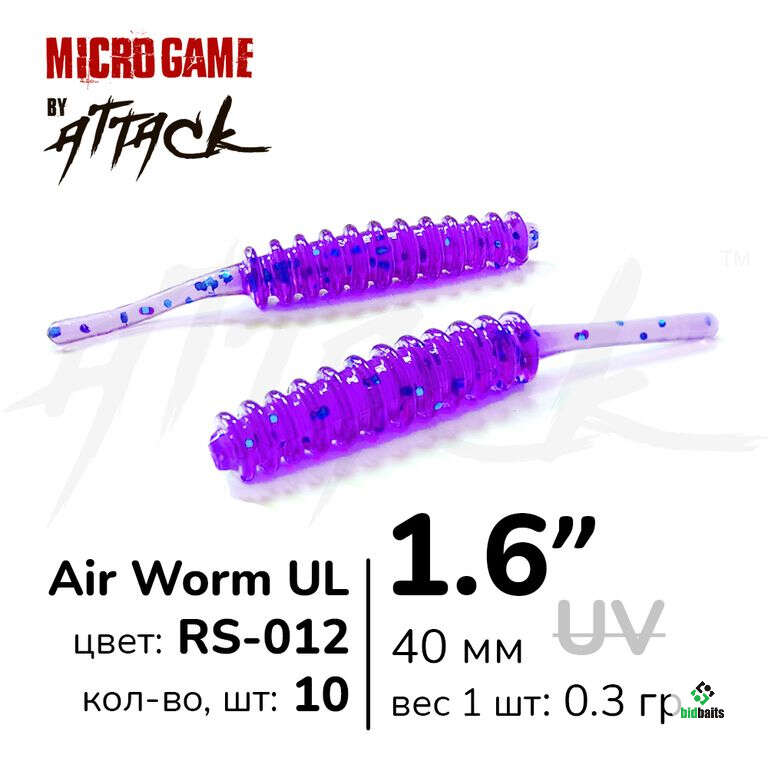 Силиконовые приманки ATTACK Air Worm UL1.6 (4 см), цв. RS-012, в уп.10 шт
