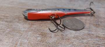 Состояние на фото - в этом случае затрудняюсь дать объективную оценку воблеру, как правило следы использования ярко выражены, может быть не всё хорошо с лкп,но видимых дефектов по функционалу не обнаружено