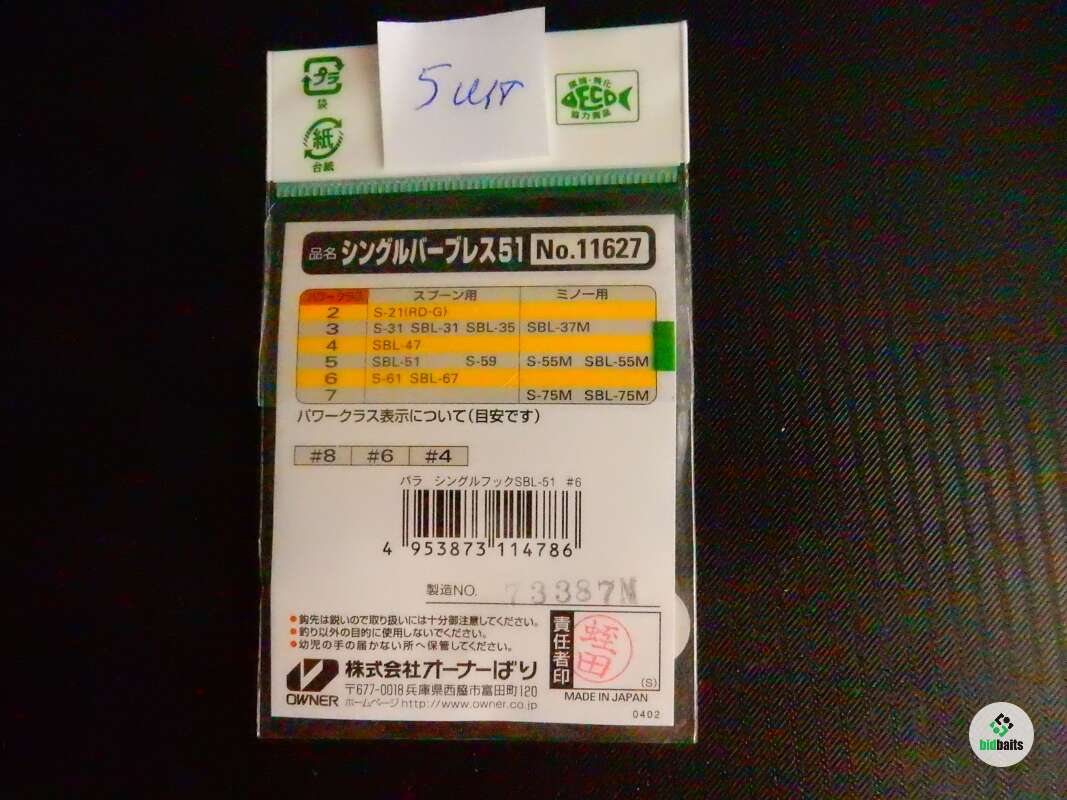 Крючки для блесен Owner SBL-51M, #6, 5 шт