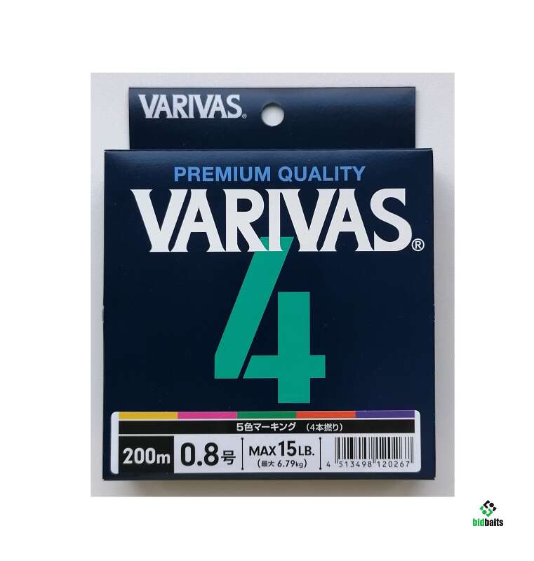 4-х жильный шнур премиум качества Varivas PE 4 Stripe Marking Edition 200m #0.8 (15lb) 6,79кг, цвет- пять цветов