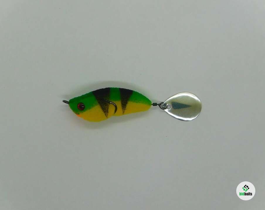 Приманка из поролона на двойнике Eagle Claw(загнутое жало) №1. Двойник слегка прижат к телу, что дает преимущество для ловли в корягах и не мешает реализации поклевок. При проводке лепесток начинает вращаться, а так же во время свободного падения, чего невозможно добиться никакими другими приманками. Тем самым привлекая к атаке любого хищника и некоторых видов мирных рыб. Поролон живой, не печеный. Полностью ручная работа. Длина поролонового тела примерно 5см. Лепесток Colorado(облегченный алюминий) №3, цвет серебро