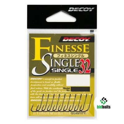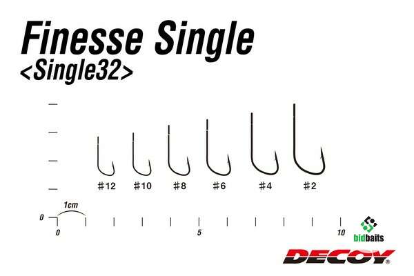 Крючок Decoy Single 32 в первую очередь идеально подходит для силиконовых приманок и классического джигового монтажа, но их так же можно использовать для оснащения блесен и для различных разнесенных оснасток. Толщина проволоки и изгиб позволяют приманке лучше держаться на крючке и не слетать при поклевках. Именно такая форма способна выдержать большие нагрузки и не так сильно подвержена разгибанию. Еще одним безусловным преимуществом крючков Decoy Finesse Single 32 является большое ушко, что в свою очередь позволяет использовать их даже с толстой проволокой на грузах и застежках, ну и конечно при проводке у приманки будет больше свободы в игре.