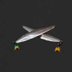 Двух корончатое серебро 999,9 пробы. Блесна имеет максимальный уход от лунки. Пару раз позволяла быть спортсменам команды "Цикада" в призах на Уральских стартах.