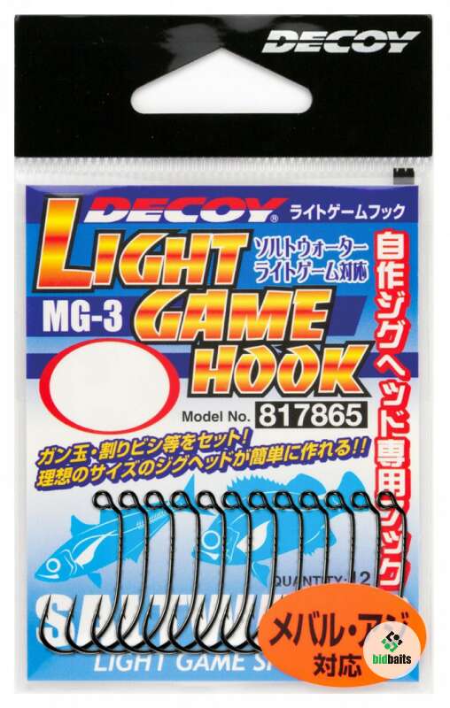 MG-3 – серия необычных одинарных крючков от японской компании Decoy. Их характерной особенностью является изогнутое ближе к ушку цевье. Такая форма крючка неслучайна. Крючки этой серии предназначены для самостоятельного изготовления джиг-головок. Имея в арсенале крючки MG-3 и свинцовые грузила-дробинки, можно быстро изготовить джиг-головки необходимой массы прямо на водоеме. Помимо изготовления джиг-головок, крючками этой серии можно оснащать и джиг-приманки на шарнирных монтажах. Ушко крючка имеет большой, удобный для монтажа размер. Благодаря стойкому антикоррозионному покрытию крючки серии MG-3 можно использовать как в пресной, так и в соленой воде.
