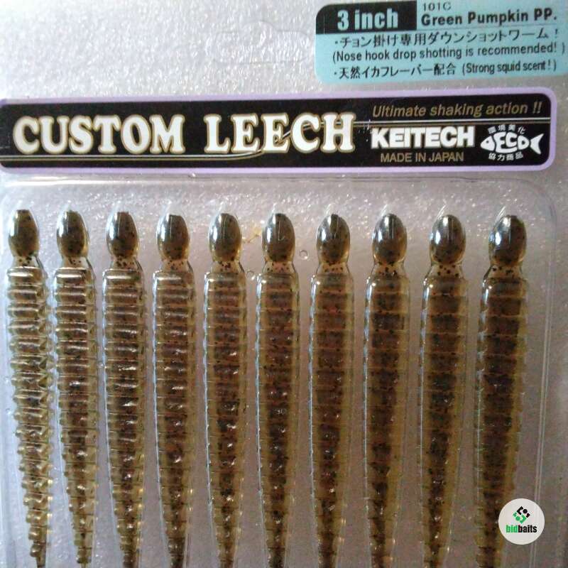 Силиконовые приманки CUSTOM LEECH (3 inch 101C.Green Pumpkin PP.) KEITECH.Made in Japan.