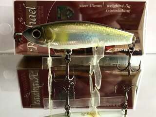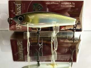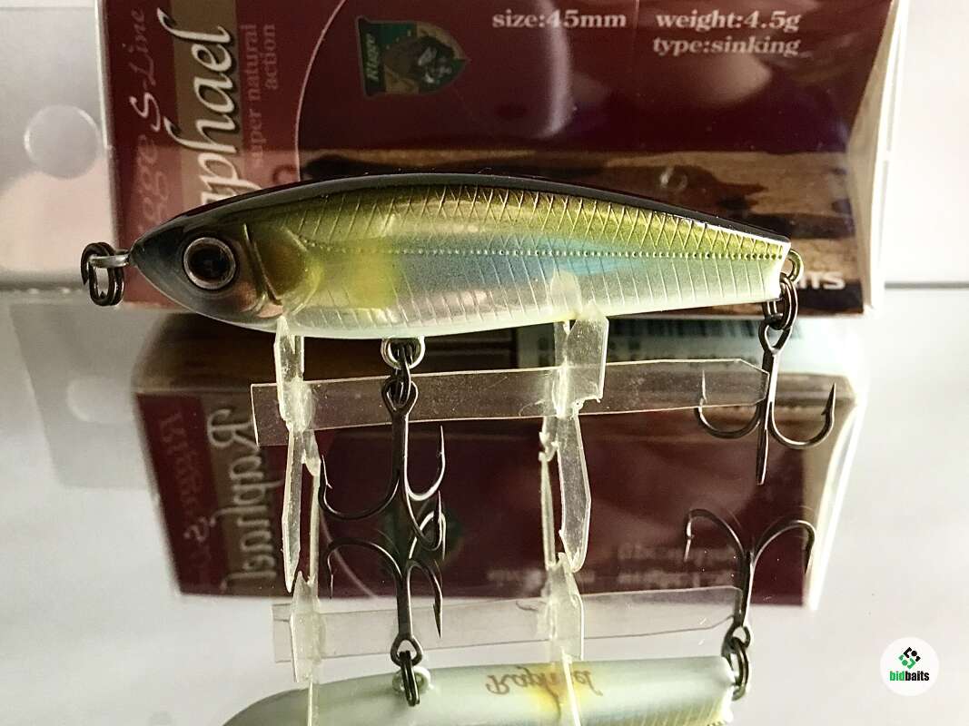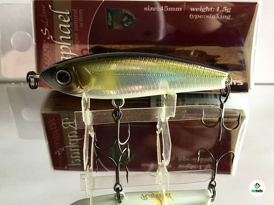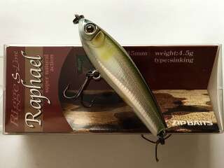 Классическое для воблеров серии прогонисто-обтекаемое тело прекрасно сбалансировано. Центр тяжести Raphael отрегулирован так, что позволяет осуществлять не только дальний прицельный заброс, но и контролировать поведение самого «уокера» уже в воде во время проводки. Ещё один небольшой конструктивный нюанс: носовая крепежная петля развернута в горизонтальной плоскости, обеспечивая тем самым незначительный подъем приманки при поступательном движении.