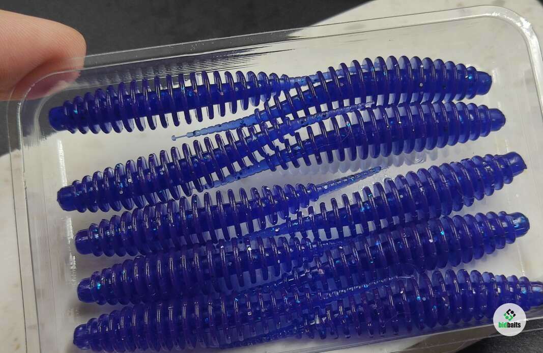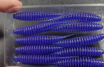 Авторский слаг танта слим 2.5" 68мм 10шт пачка цвет виолет, съедобный плавающий силикон, светится в ультрафиолете, арома спейс.