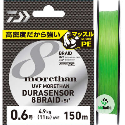 Плетеный шнур Daiwa Morethan Durasensor X8 1.0PE, 18Lb(8.0 кг), 150м, Lime Green