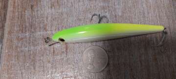 Состояние на фото - в этом случае затрудняюсь дать объективную оценку воблеру, как правило следы использования ярко выражены, может быть не всё хорошо с лкп,но видимых дефектов по функционалу не обнаружено