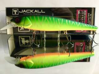 JACKALL JOCKIE 120F отличается своеобразной игрой и сочетает в себе качества приманок двух типов: minnow и popper. Обладая хорошими полетными характеристиками, после приводнения на поверхность и паузах во время проводки приманка располагается вертикально. Причем, над водой приподнята только головная часть. Особенность JOCKIE 120 , имеющей вытянутую форму тела с отличной гидродинамикой – небольшая выемка в головной части под лопастью. Благодаря ее наличию при опускании головы во время рывка воблер захватывает воду, издавая привлекательный для щуки и окуня попперный «бульк». При твичинговой анимации этот воблер двигается в приповерхностном слое и шарахается из стороны в сторону, на паузах выныривая на поверхность воды. Jackall Jockie 120- это превосходный вариант для облова обширного мелководья.