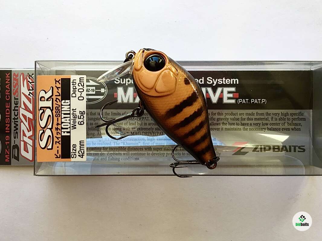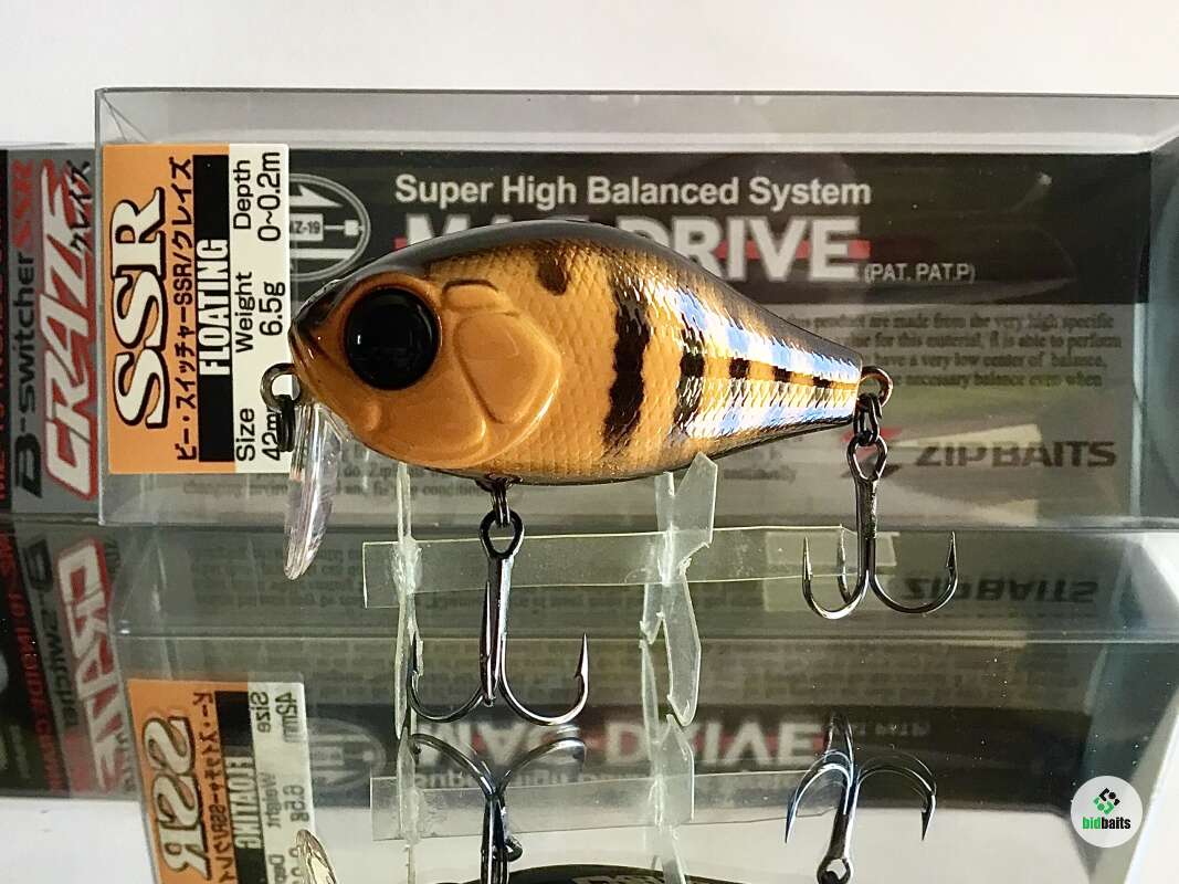 ZipBaits B-Switcher CRAZE SSR (Super Shallow Runner)– поверхностный тип. Главной отличительной чертой этой модели, кардинально влияющей на функциональные качества, является небольшая лопасть, посаженная перпендикулярно телу. Именно такой конструктив предопределяет нулевое заглубление воблера, и лишь ускорение в движении позволяет ненамного притопить приманку. При равномерной проводке Craze SSR идет строго по поверхности, оставляя аппетитные, расходящиеся в разные стороны усы, при этом траектория его движения напоминает широкую синусоиду. Благодаря компактному телу и приличной массе воблер при забросе летит словно пуля, выпущенная из ружья. Его полет, а также положение в воде во время проводки контролируется запатентованной балансировочной системой. B-Switcher CRAZE SSR хорошо подойдет для ловли голавля, окуня или жереха.