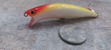 Состояние на фото - в этом случае затрудняюсь дать объективную оценку воблеру, как правило следы использования ярко выражены, может быть не всё хорошо с лкп,но видимых дефектов по функционалу не обнаружено