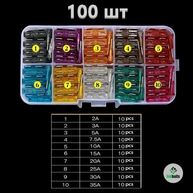 Автомобильный предохранитель в ассортименте 100 шт
